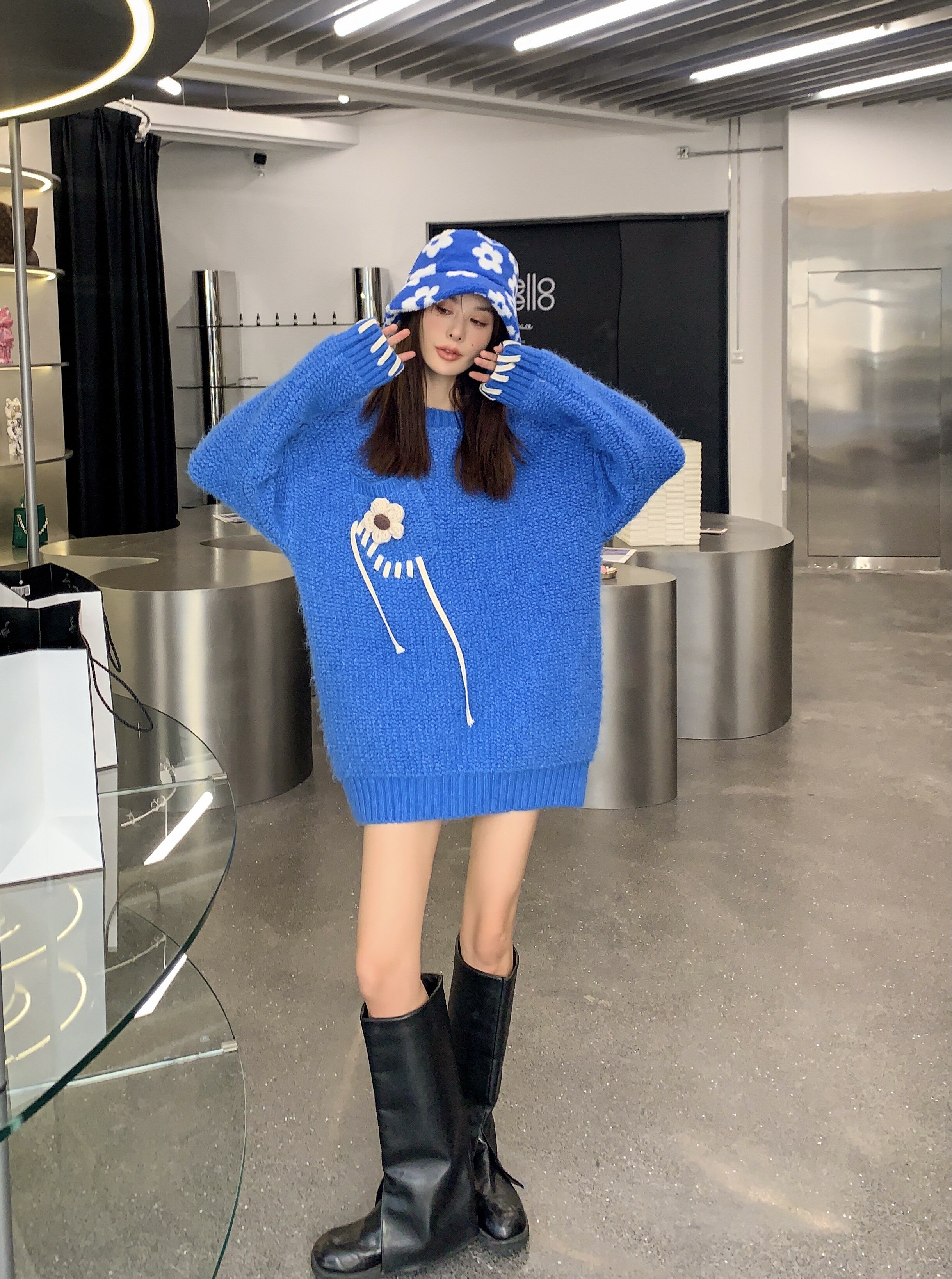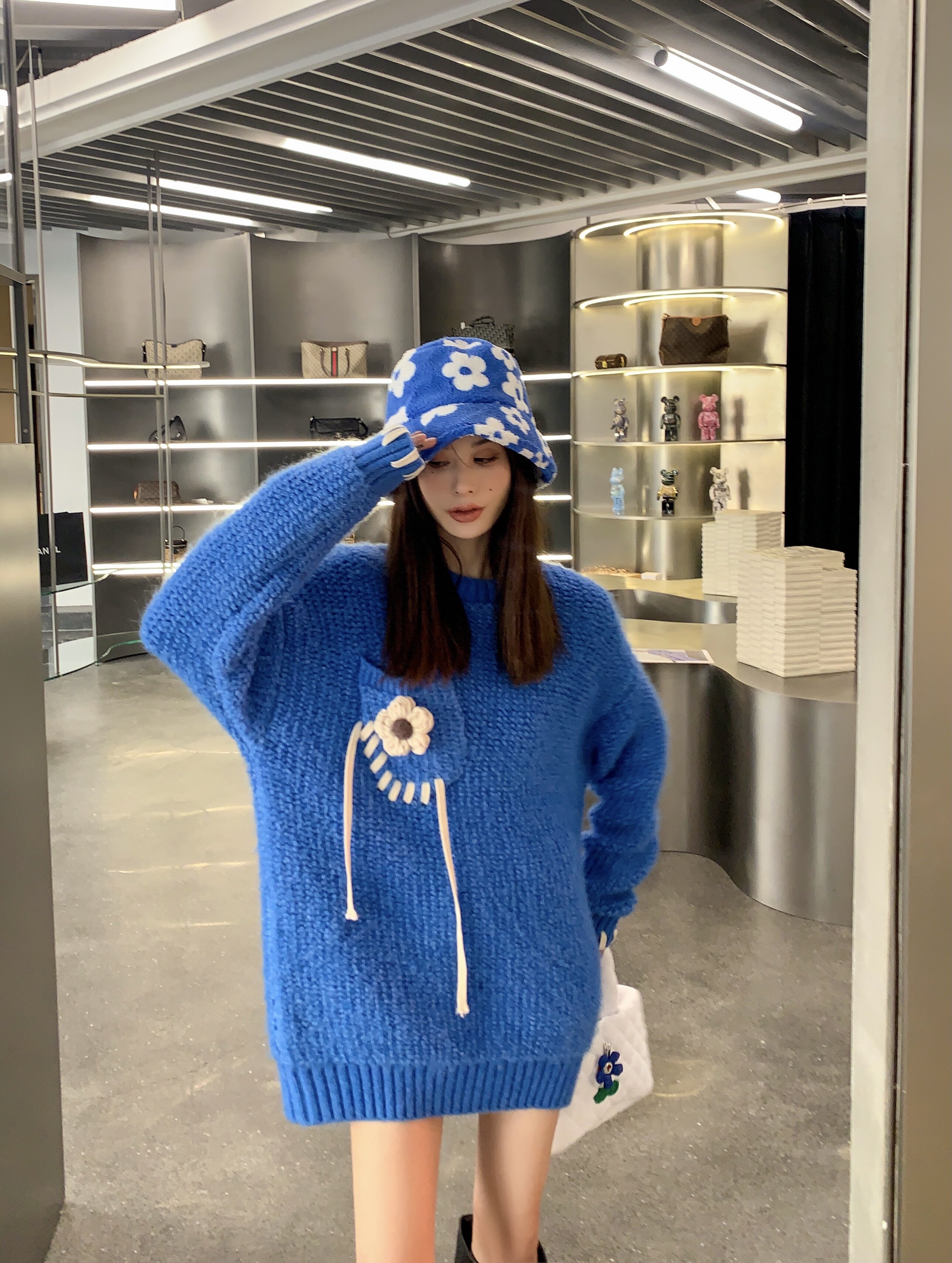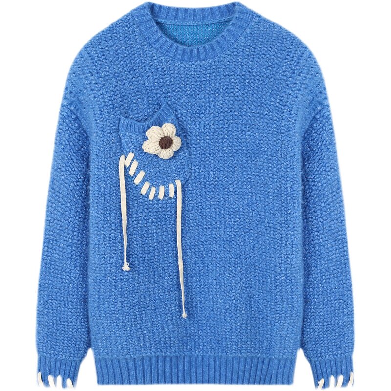 (Li Haofi same style) SOMESOWE Klein blue bandage floret sweater