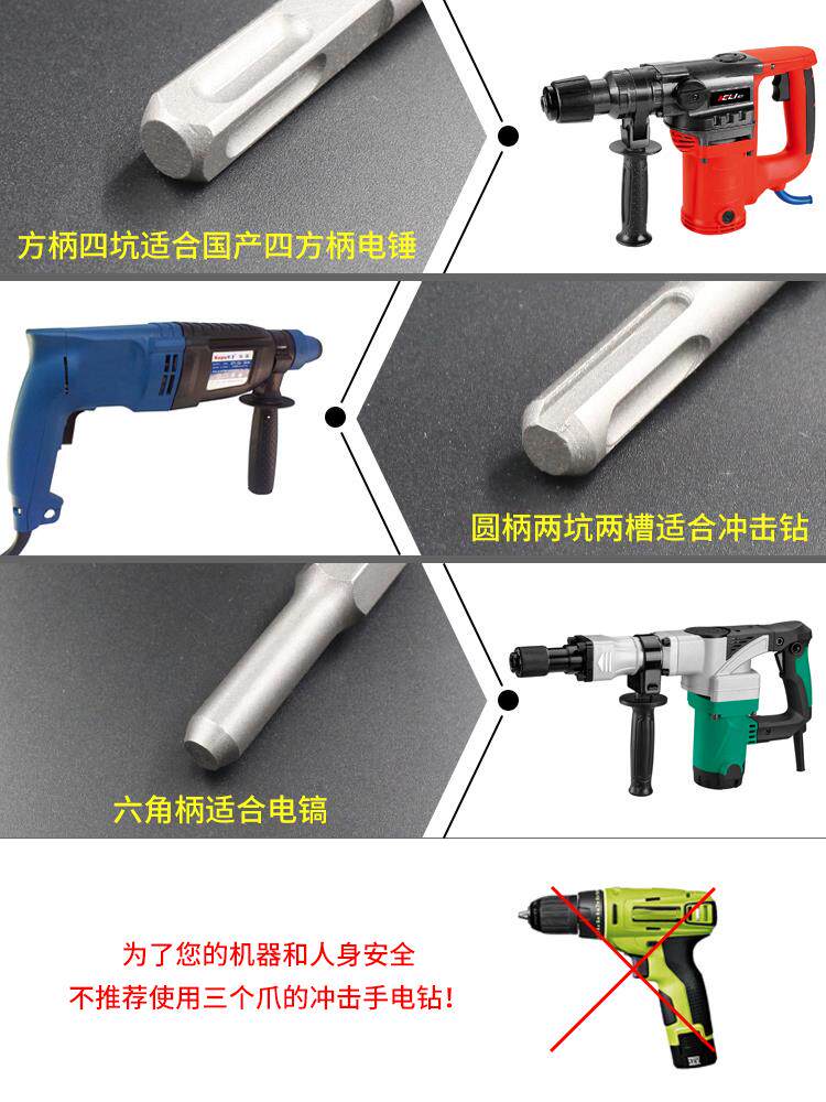 New Xin Wearing Wall Brick Head Electric Hammer Drill Lengthened Pit Round Shank Electric Drill Quadrilateral Electric Hammer Drill Bit Shank Steel Flat Chisel Punch