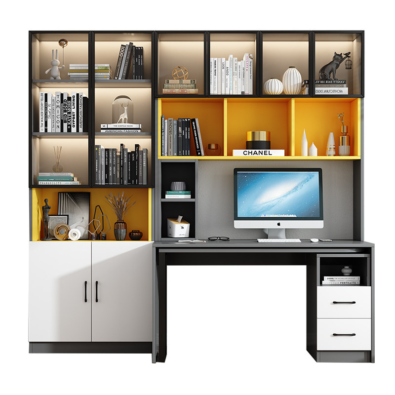 Light luxury solid wood desk bookshelf integrated rotary desktop computer desk with bookcase combination home simple corner desk