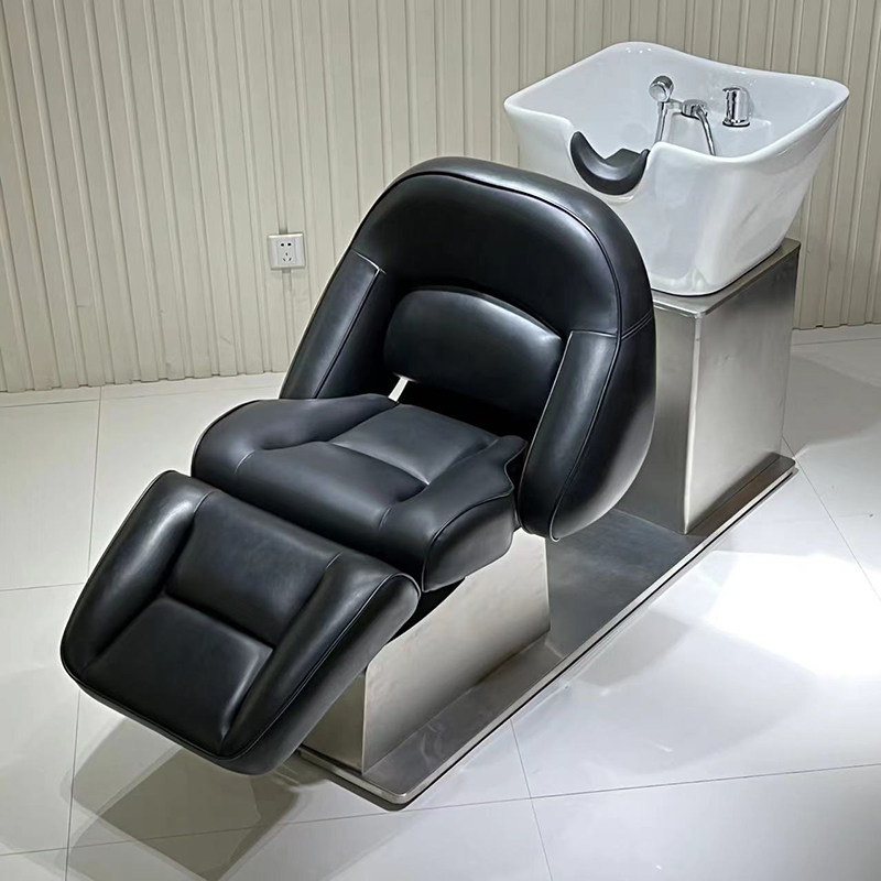 One key to start electric lift One key to start electric lift Water heater one key to start electric lift Rotating Japanese soft pillow Stainless steel silver base luxury shampoo bed Stainless steel silver base black