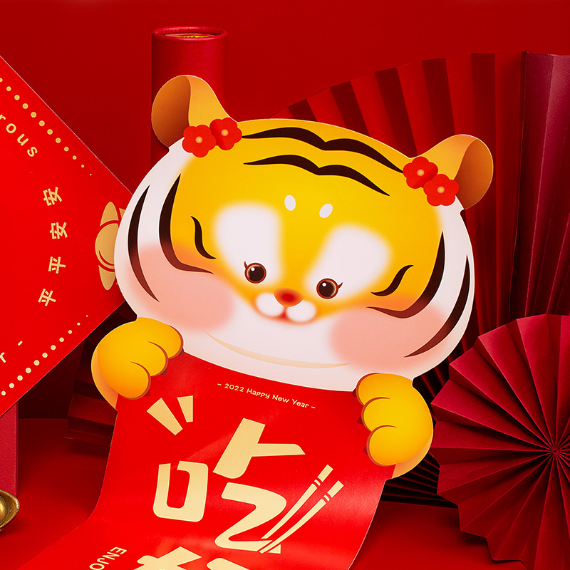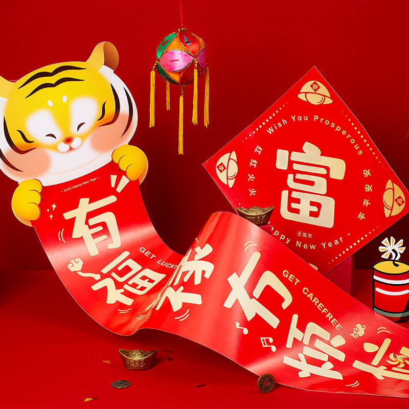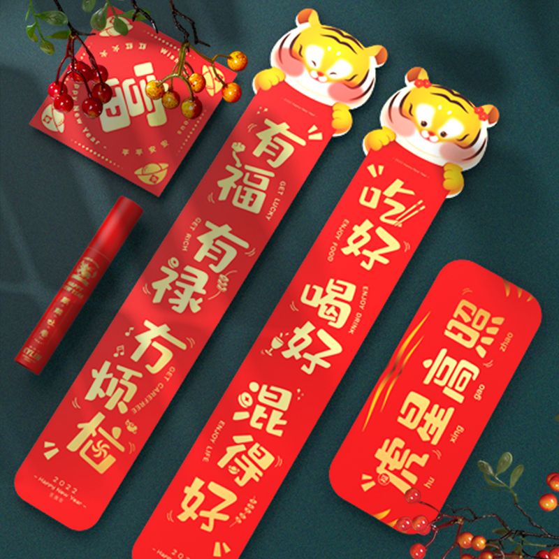 Tiger Year couplets for Spring Festival Spring Festival Spring Festival 2022 Home Cartoon New Year's cute creative high-end Fueword door post decoration