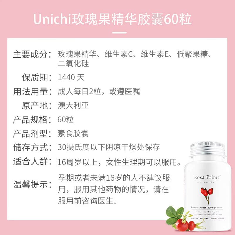 Australia Unichi rosehip essence capsules 60 VC brightening skin oral collagen direct mail