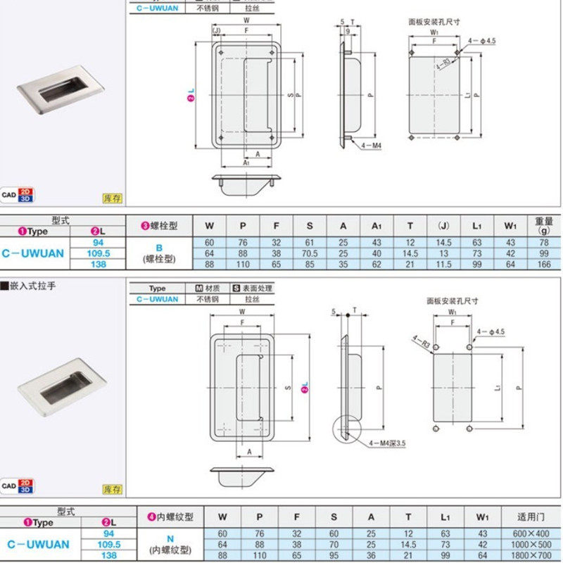 Stainless steel embedded handle C-UWUAN94 109 5 138-N B