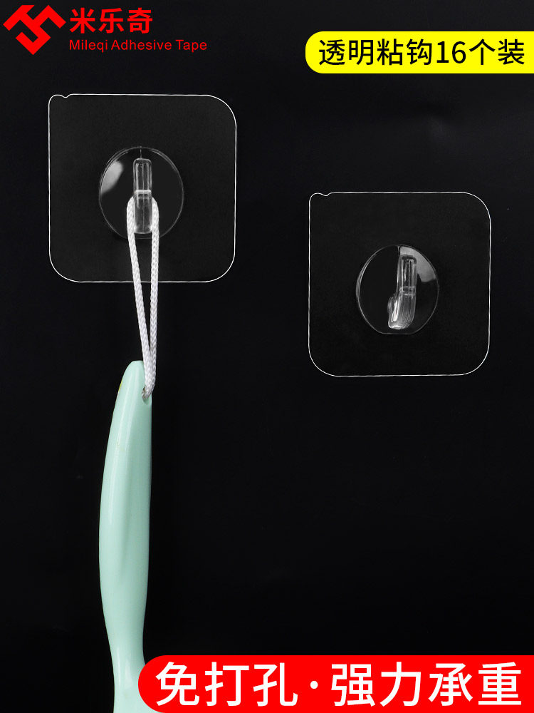 Waterproof sticky hook hook strong adhesive sticker wall free punching wall hanging no trace transparent creative kitchen door sticker