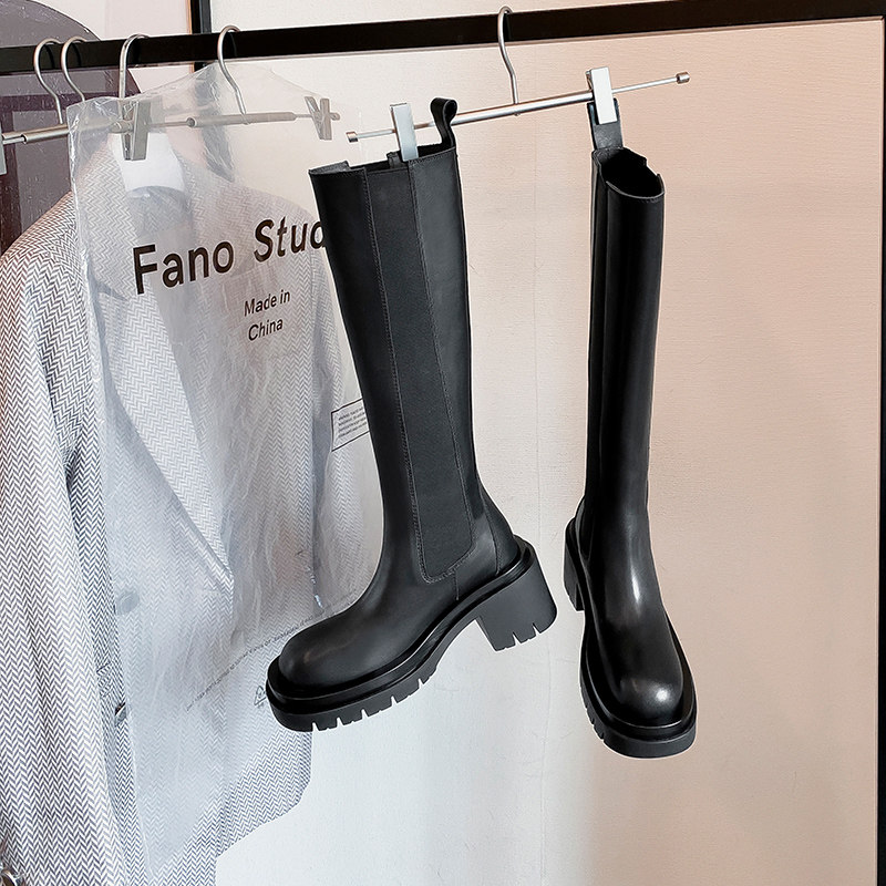 Cowhide version~Riding boots women's leather but knee-length boots are hot models that are thin and thick-soled thick-heeled boots high boots
