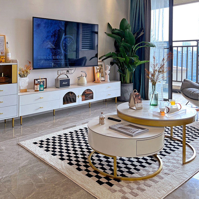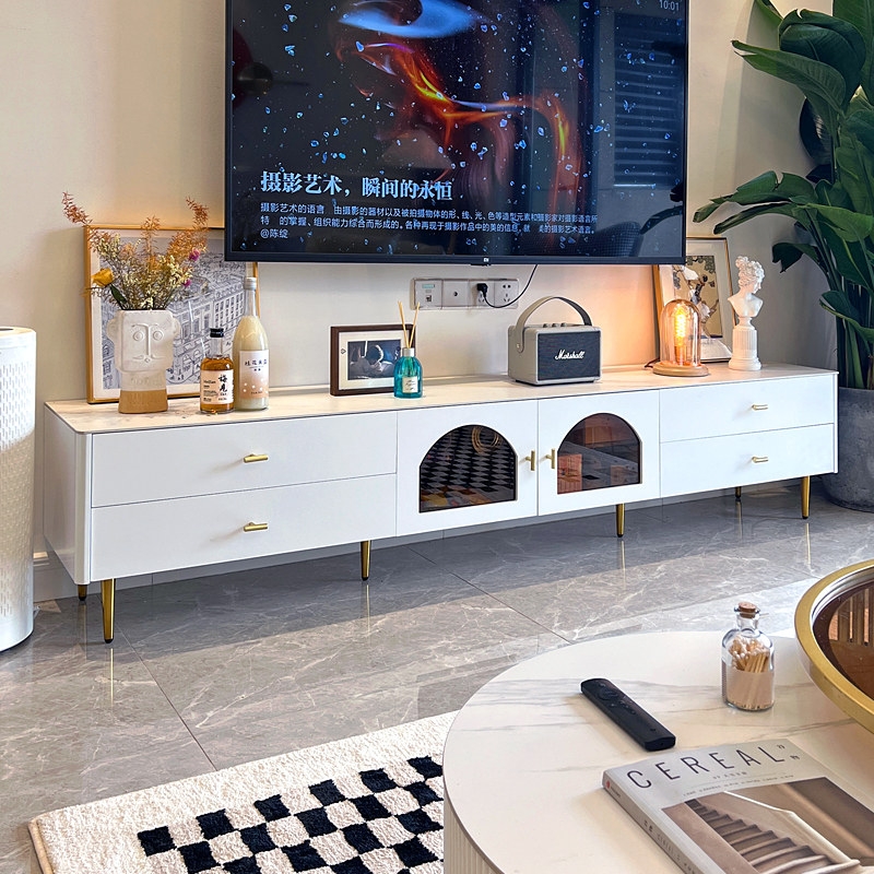 Nordic modern minimalist light luxury rock board coffee table TV cabinet combination living room small apartment Italian-style white high floor cabinet