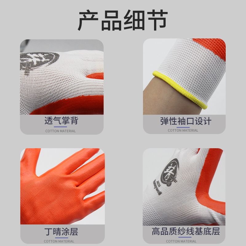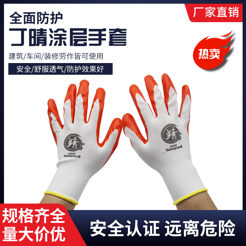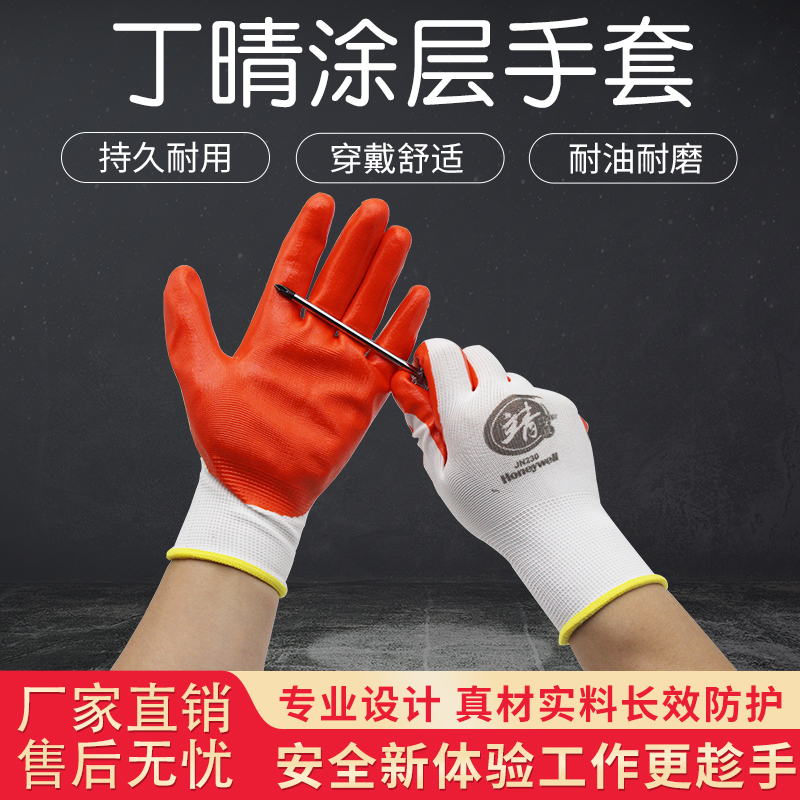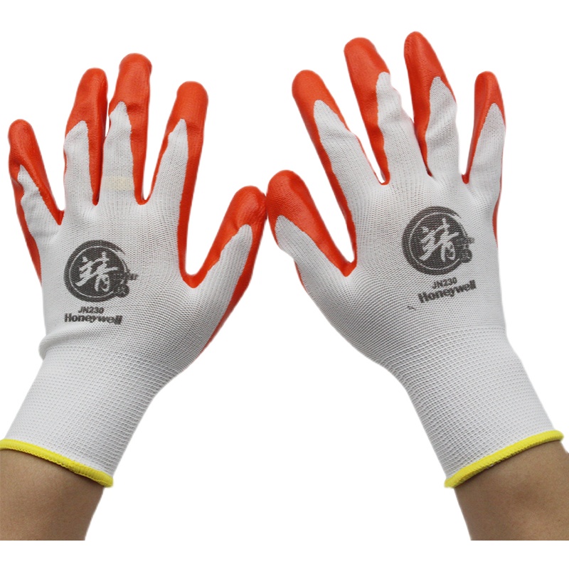 Honeywell Ding clear gloves abrasion resistant anti-slip decoration Construction Rene Orange Coated Labor Protection Gloves