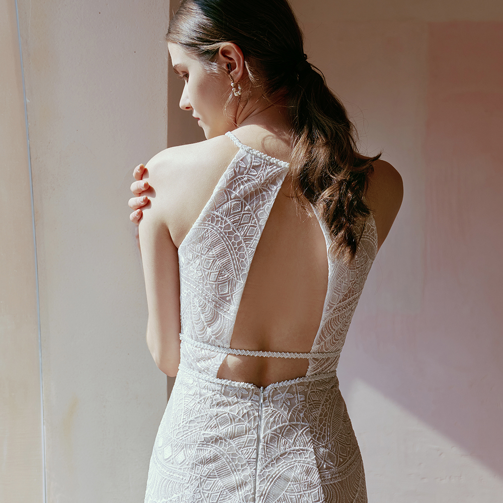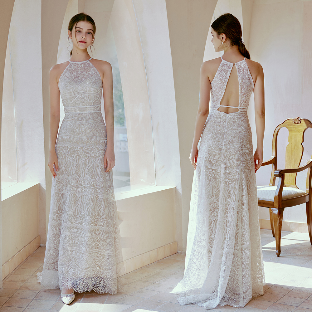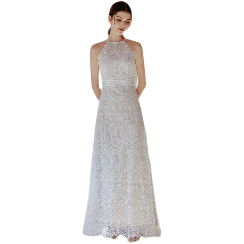 Founder Sanskrit designer Hanging Neck Ruffles Back Fish Tails Small Tug Lace Light Wedding Dress Gown Dress for the annual meeting
