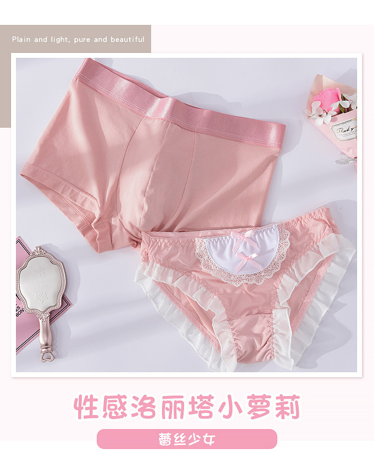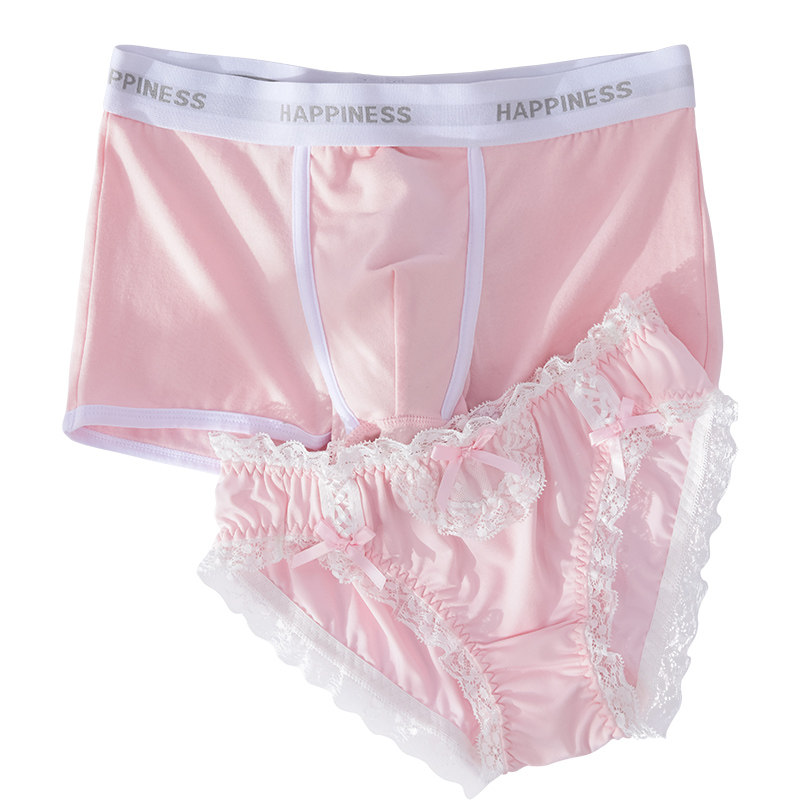 Couple underwear couple models one man and one woman sexy passion lace pink new cotton men's boxer women's triangle