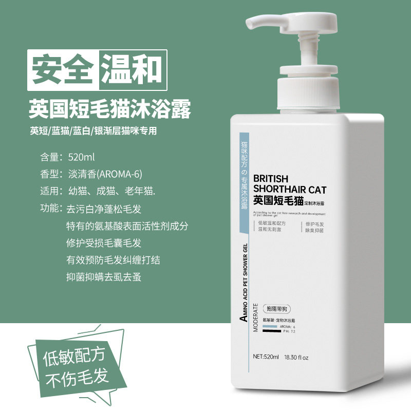 Cat bath special shower gel British short blue cat gold and silver gradient sterilization and mite removal pet toiletries Daquan