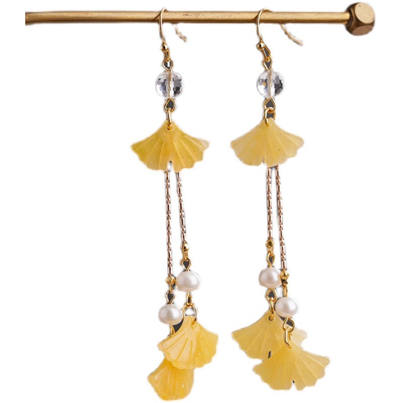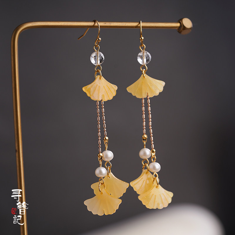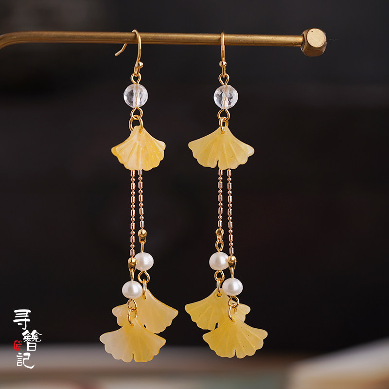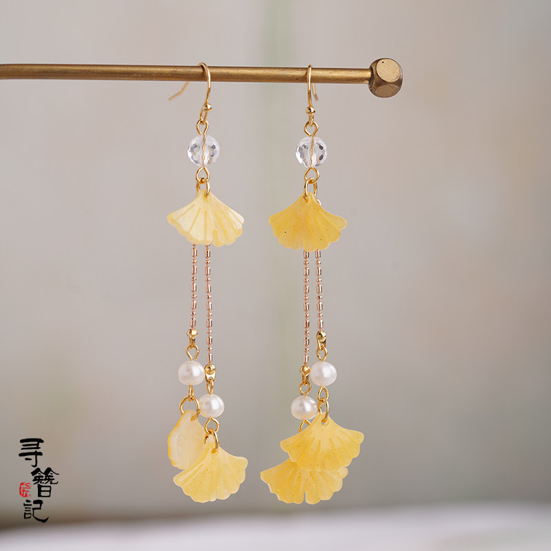 Look for Han-suit Banggou Ancient Yellow Ginkgo Leaf Multi-leaf Earrings