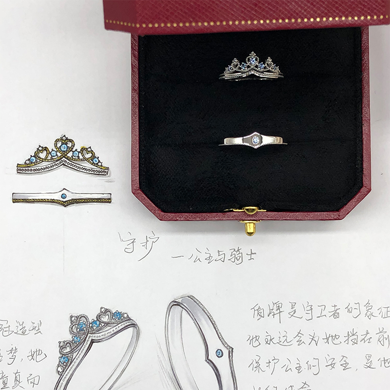 Zhou Xiaoyang original design 18k gold ring couple men and women plain circle lettering platinum marriage proposal custom gift