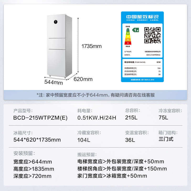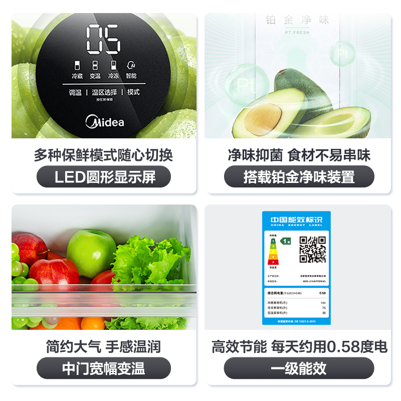 Midea refrigerator three doors 215L first-class frequency conversion frost-free Midea Hualing 239 liters three L first-class inverter frost-free Midea refrigerator three doors 213L secondary 0 49 degrees Tianmei refrigerator two doors 172