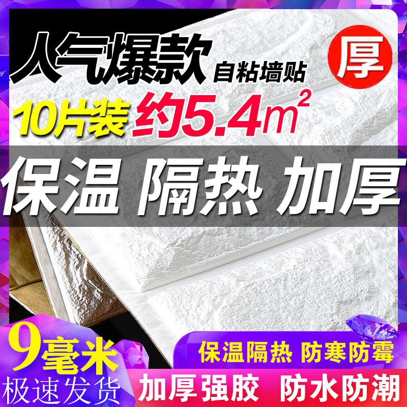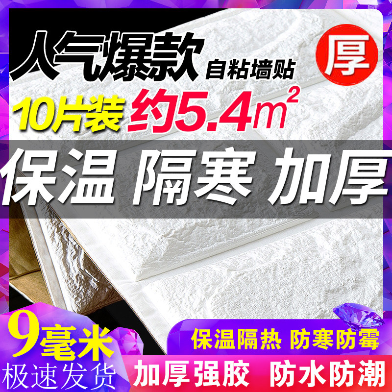 Ultra-thick thermal insulation wall stickers indoor warmth and anti-cold wave self-adhesive 3d three-dimensional stickers living room balcony thickened wallpaper Caichen