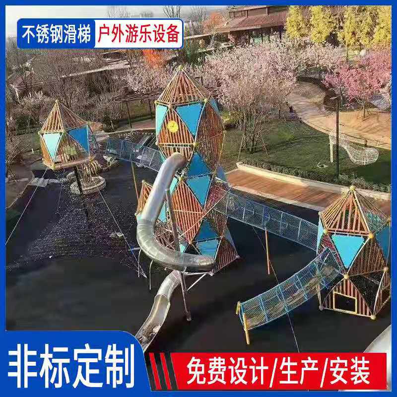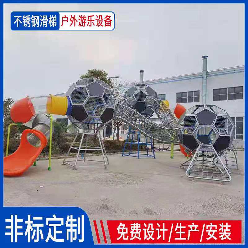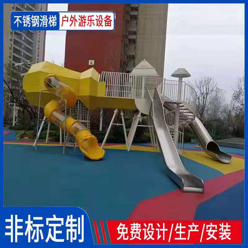 Outdoor large children's stainless steel slide kindergarten scenic area transparent spiral turn slide unpowered amusement equipment