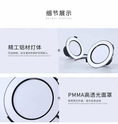 Aup black edge silver side cylinder light LED ceiling light recessed living-room copper lamp tricolour change light ultra-thin barrel lamp 7 5cm