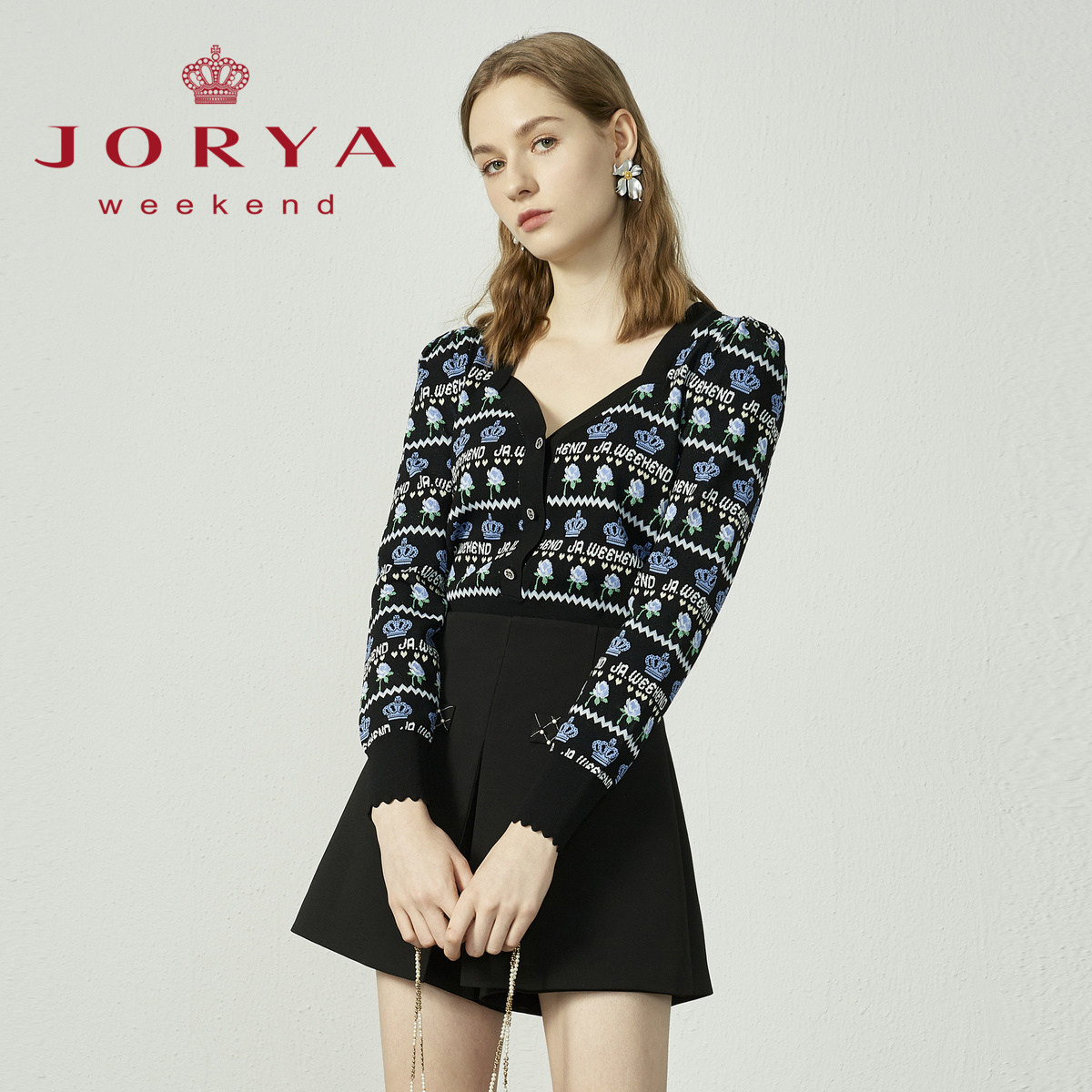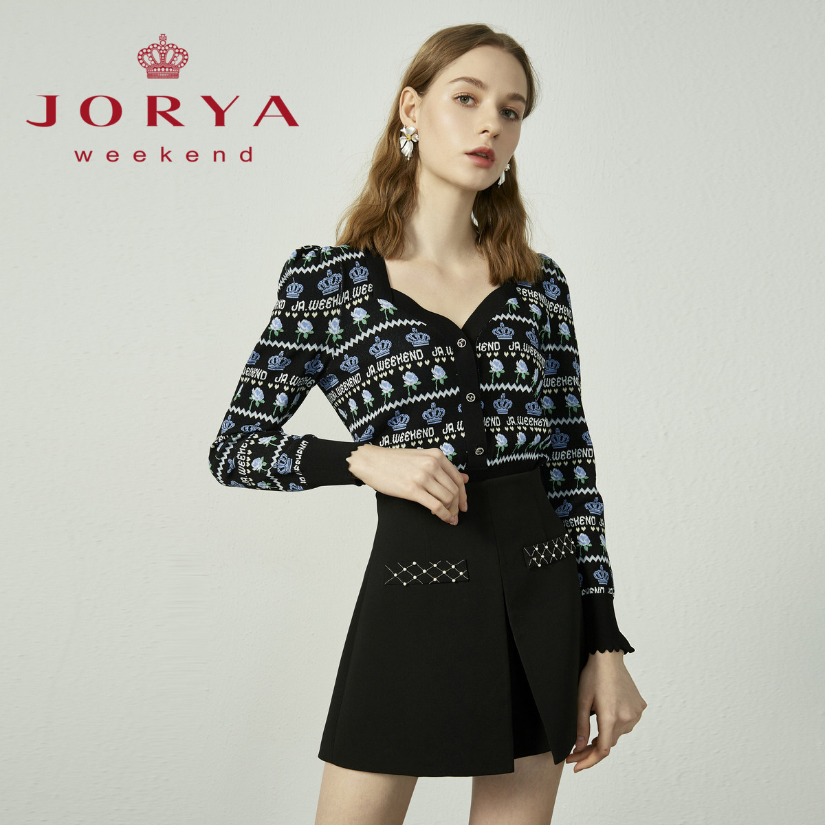 Zhuoja over the weekend 2022 spring and summer new square collar retro-colored jacquard single-row buttoned-up-knitted sweatshirt EJWCAZ41