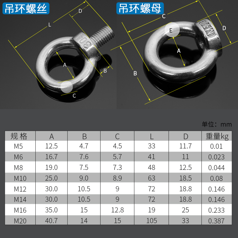 304 stainless steel lifting ring nut lifting ring screw hanging wire ring nut lifting ring screw nut M6M8M10M12