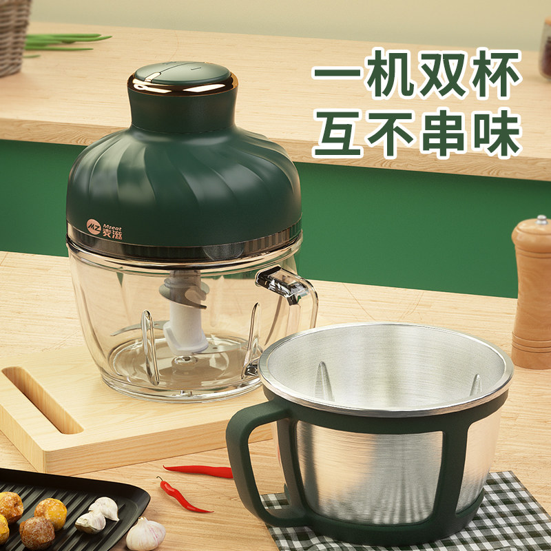 (Double cups and double knives) German Maizi meat grinder multi-functional household electric small mixer cooking machine minced meat
