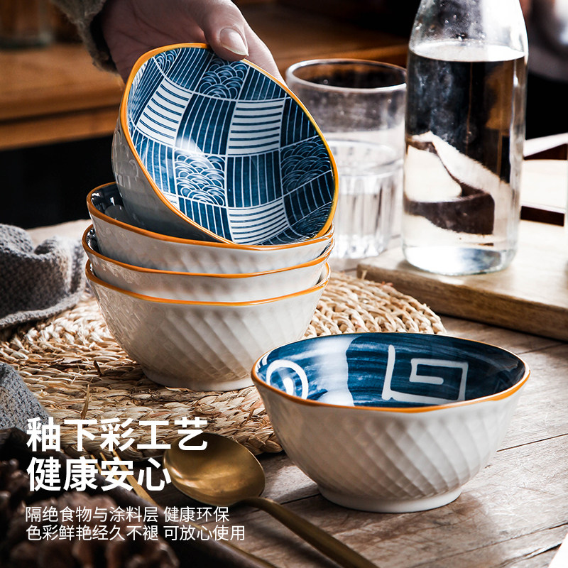 Japanese-style bowl household rice bowl 10 pieces of personalized creative tableware for eating ceramic rice bowl air fryer special bowl