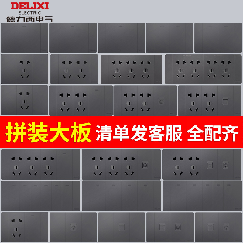 Delixi 118 Star Brushed Grey Household Open 4-digit 6-digit 6-digit Double Cut 6-digit Bath Ba Switch Panel