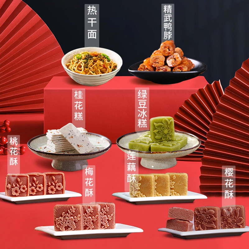 Hubei Wuhan Trinatal cherry blossom crisp Spring Festival Spring Festival Spring Festival delivery New Year goods hot dry noodles Duck Neck Gift box to send elders to lead