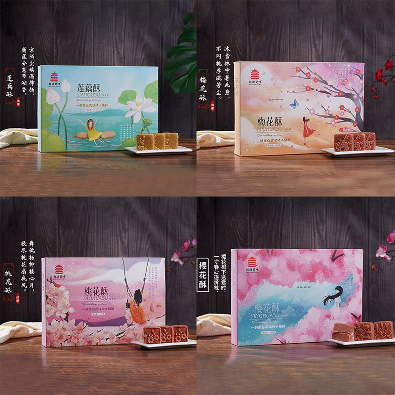 Cherry Blossom Crisp Peach Blossom Crisp Hot Dry Face Refined Wu Duck Neck Sweet-scented Osmanthus Rice Cake Mung Bean Ice Cake and so on