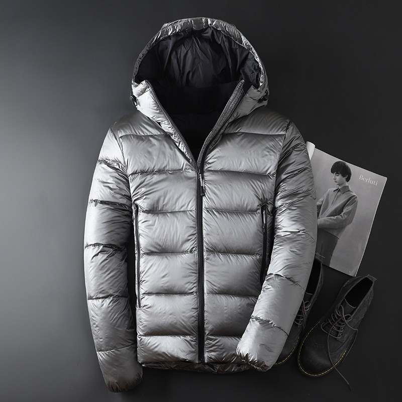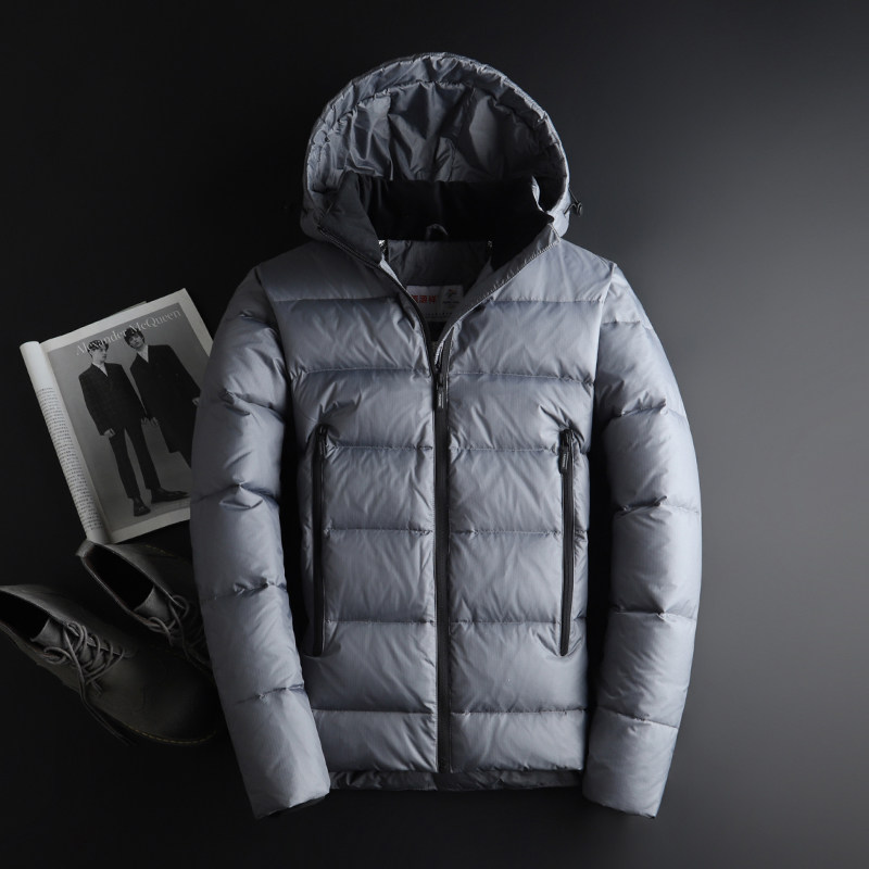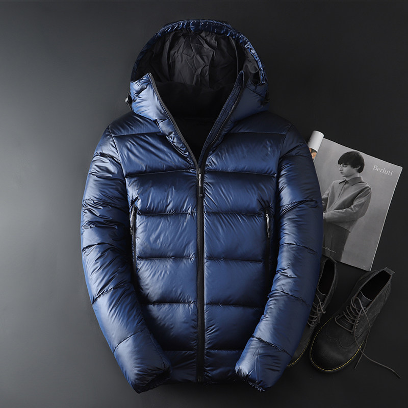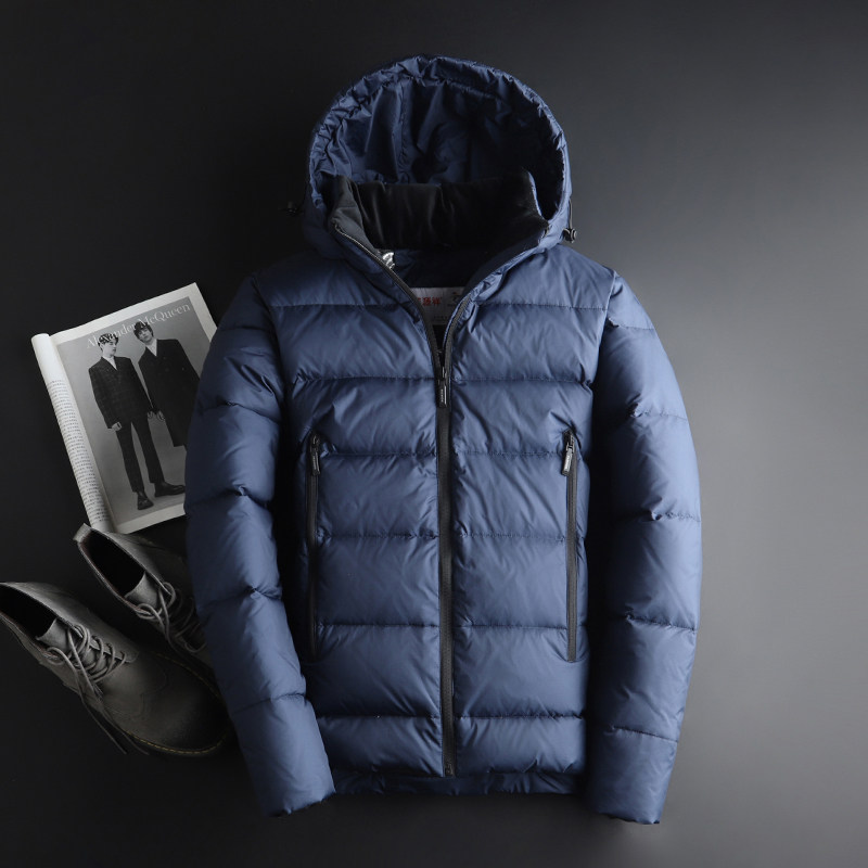2021 Fashion new bright face down clothes men's short and white goose down thickened warm and removable with cap jacket tide