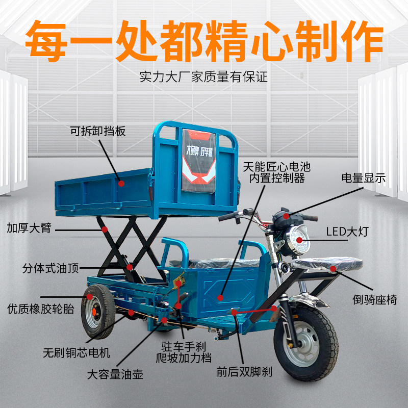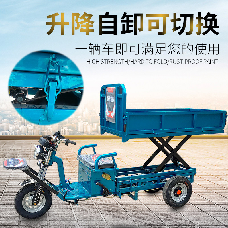Electric three-wheel rolling dung truck hydraulic lifting platform dump one transport vehicle agricultural farming site feed