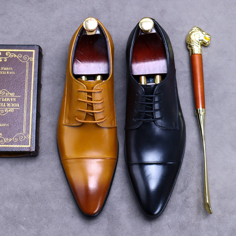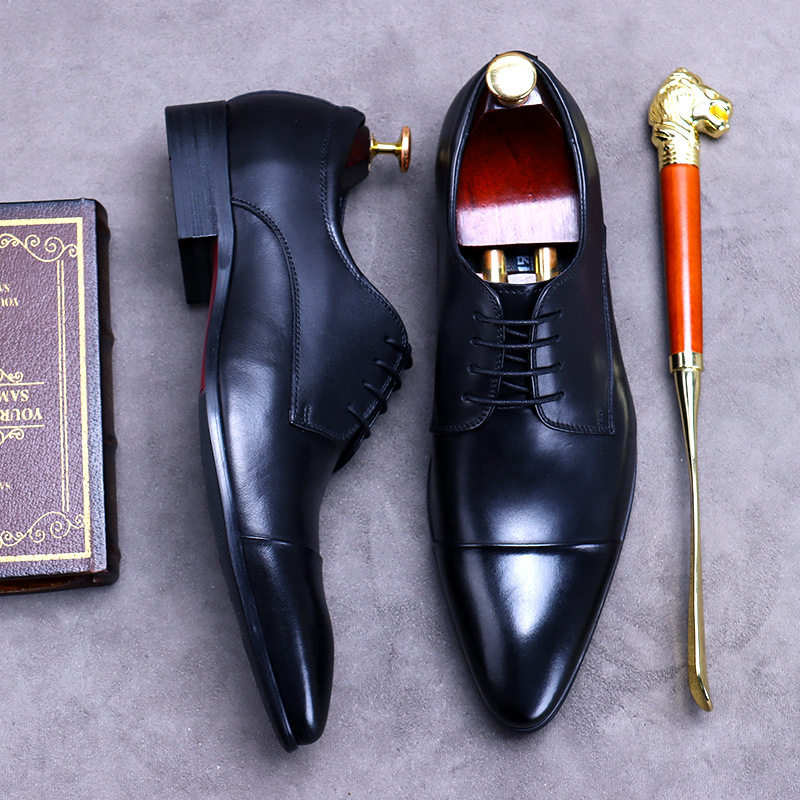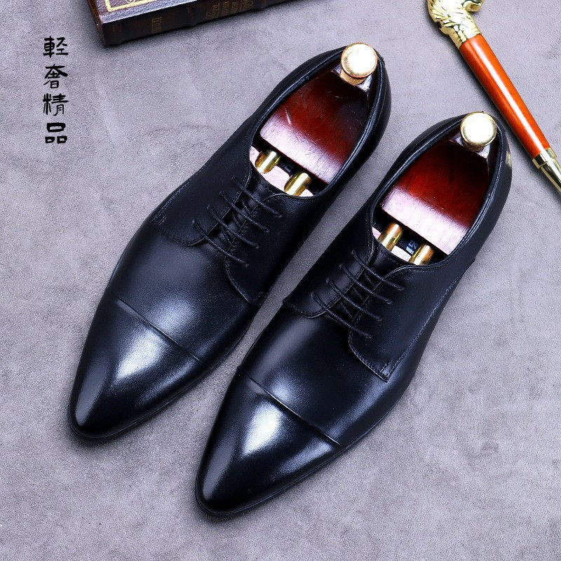 Office leather shoes pointed toe British 2021 winter youth breathable business formal men's shoes three-joint wear-resistant Oxford shoes