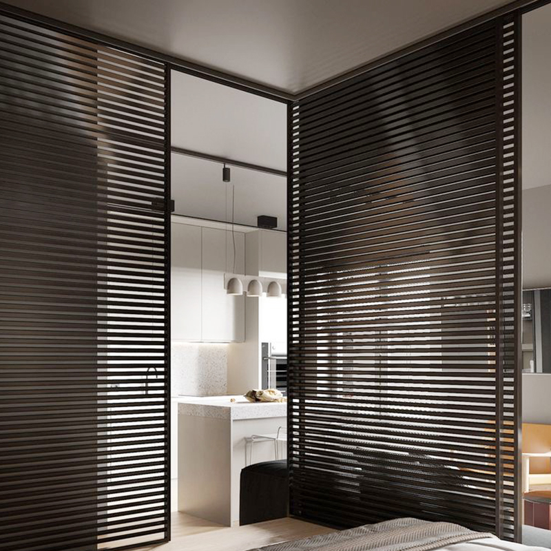 Very narrow aluminum alloy glass sliding door cloakroom kitchen powder room sliding door partition door grille sliding door customization