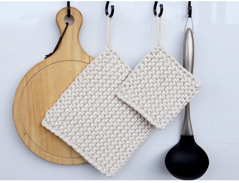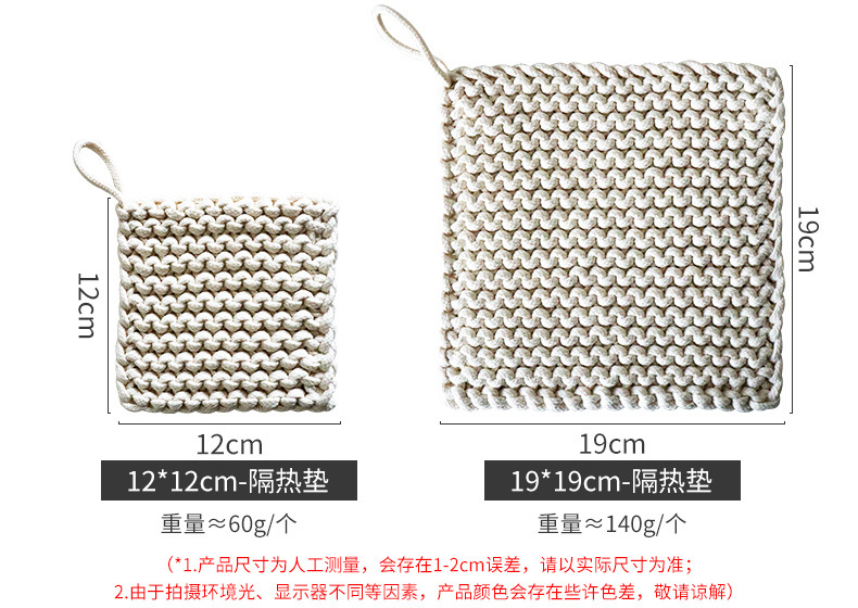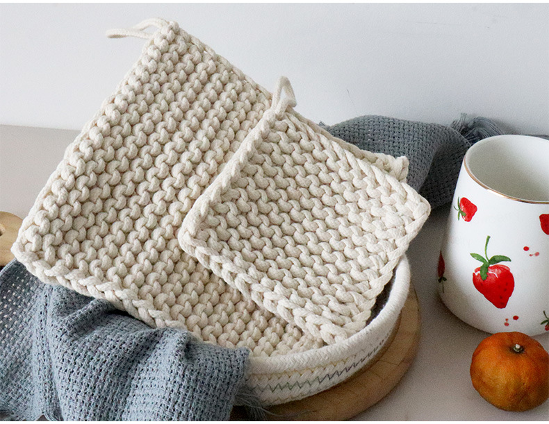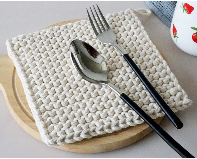 Japanese retro handmade creative woven cotton rope thick square Nordic anti-scalding heat insulation plate pad coaster large pot pad