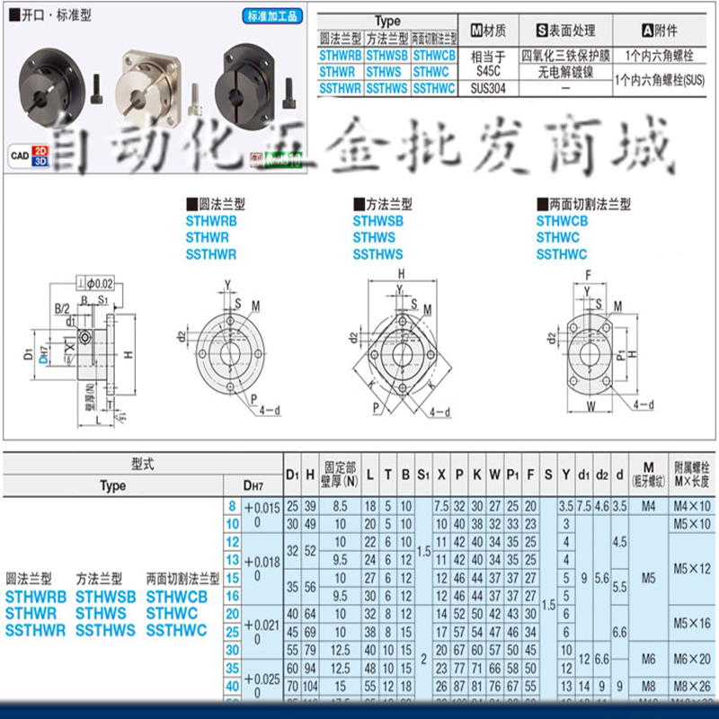 Round flange STHWR8 (aperture 8MM) round flange STHWR10 (aperture 10MM) round flange STHWR12 (aperture 12MM) round flange STHWR