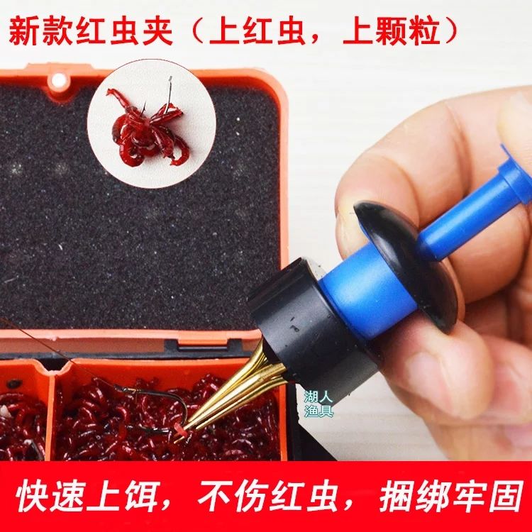 Red Worm Bait on Automatic Bundling Fishing Earthworms Leather Fascia Live Bait Clips Quick Binder Fishing Supplies