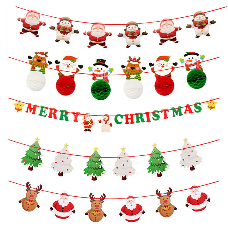 Christmas Tree Paper Flags Snowman Old Man Paper Flags Santa Claus and Deer Paper Flags Snowman Old Man Alphabet Paper Flags Non-woven Snowflake Paper Ball Pull Flags Christmas Tree Russian Flags Santa Claus Russian Flags Butterfly Russian Flags