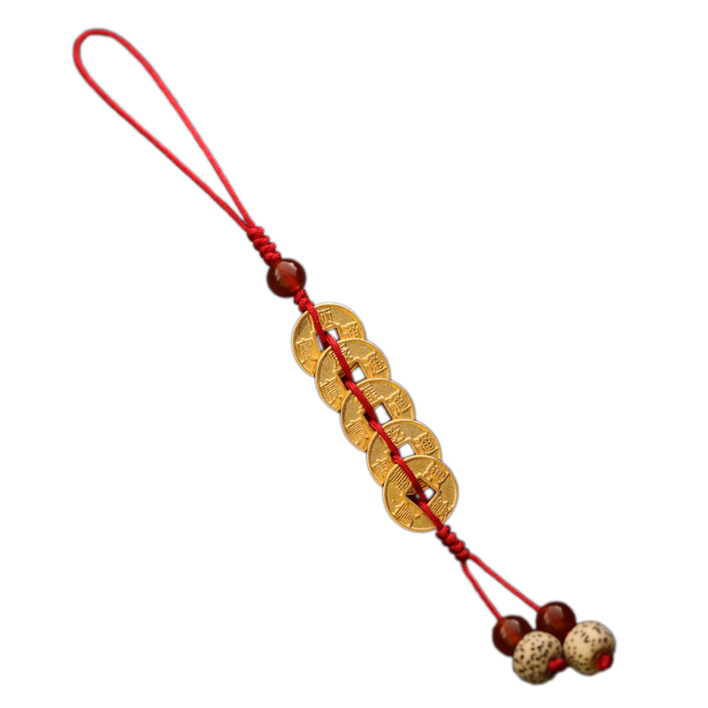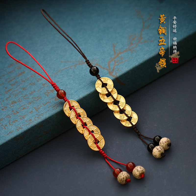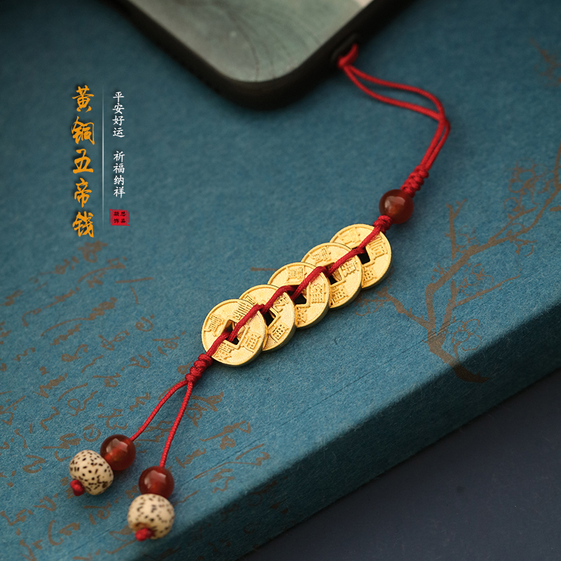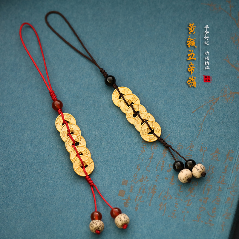 Ancient pure copper five emperor money mobile phone chain lanyard high-grade pendant men and women carry safe creative gift jewelry