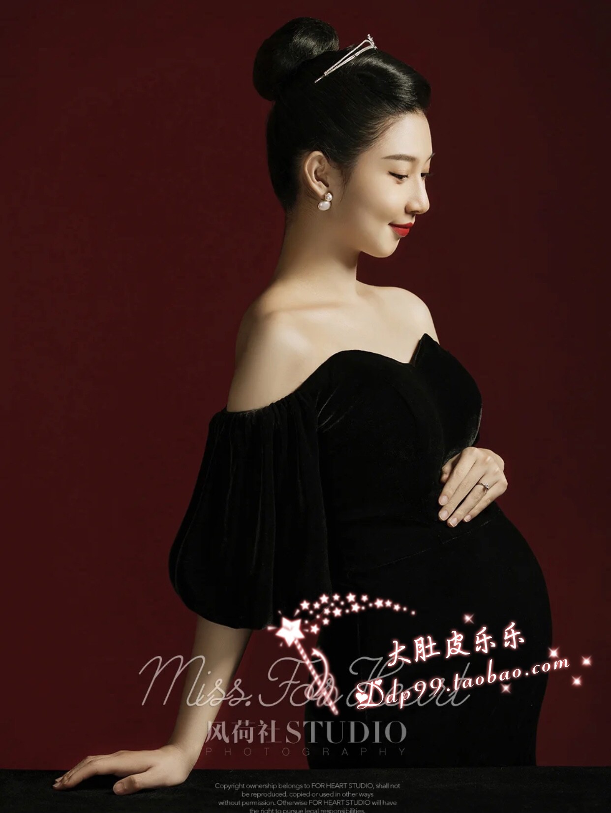 830 Hepburn star style pregnant women velvet photo clothing skirt rental photo studio to take pregnancy photos pregnant mommy photo skirt