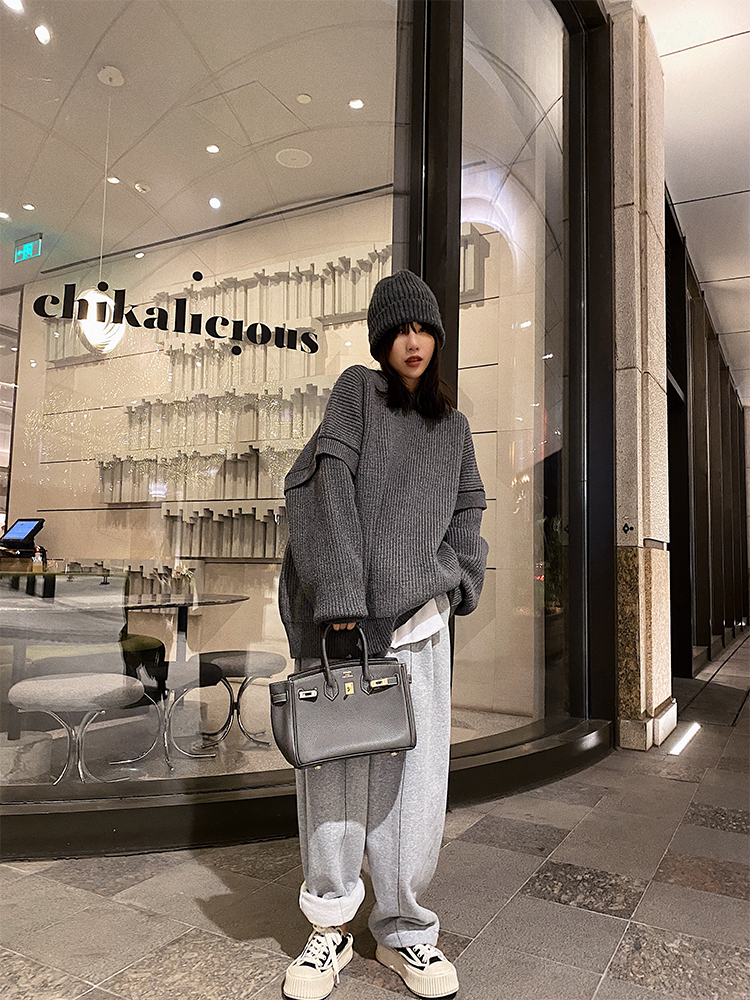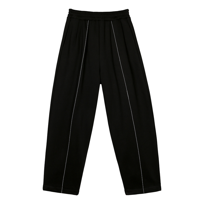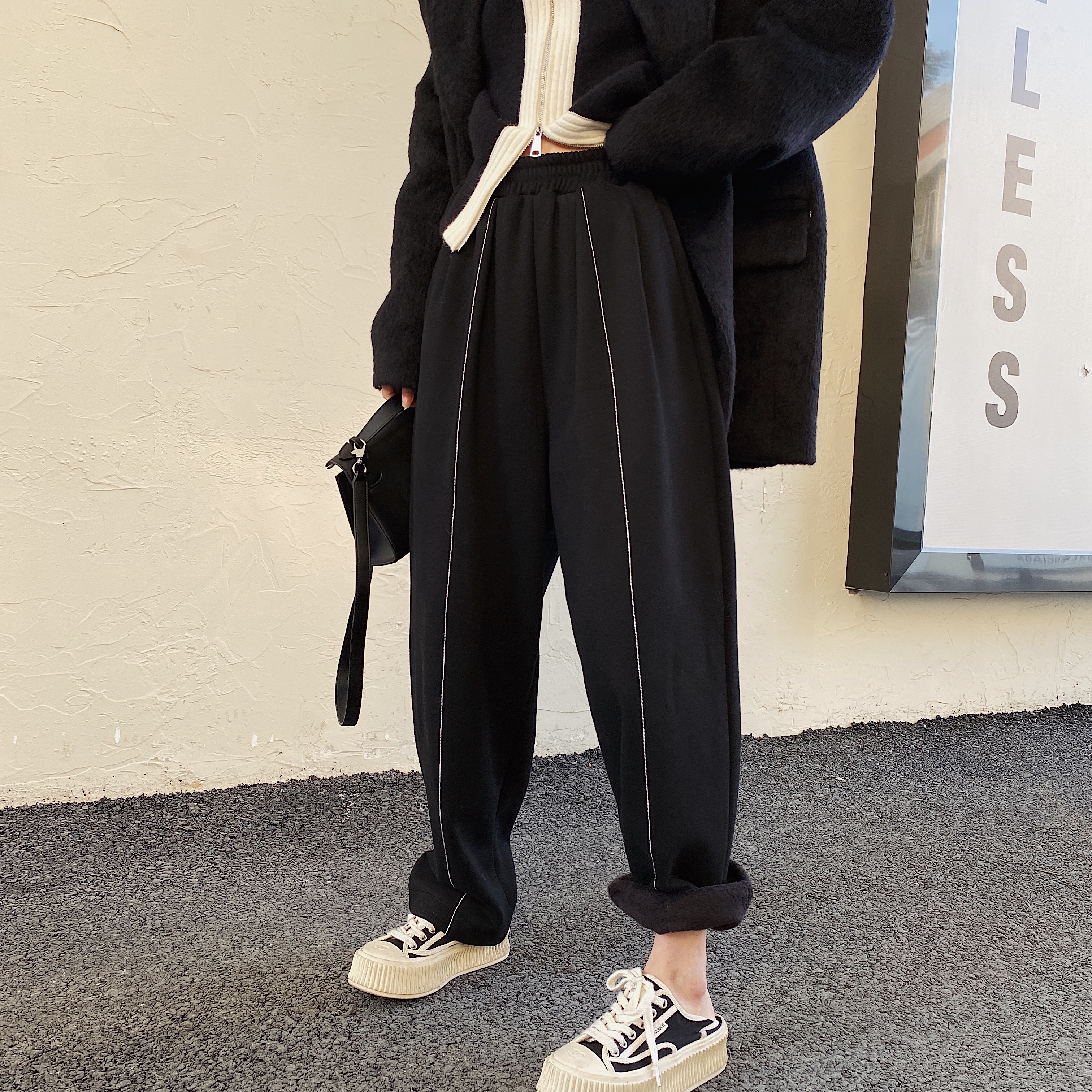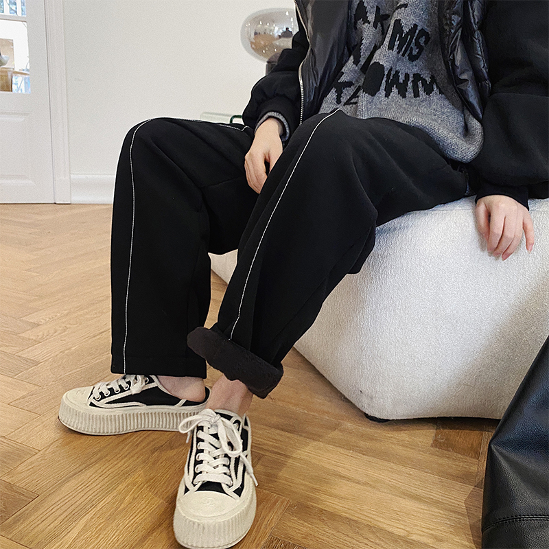 Xiao Nian custom black wide-legged straight loose casual pants women's 2021 winter plus velvet padded slim sports thick cotton pants