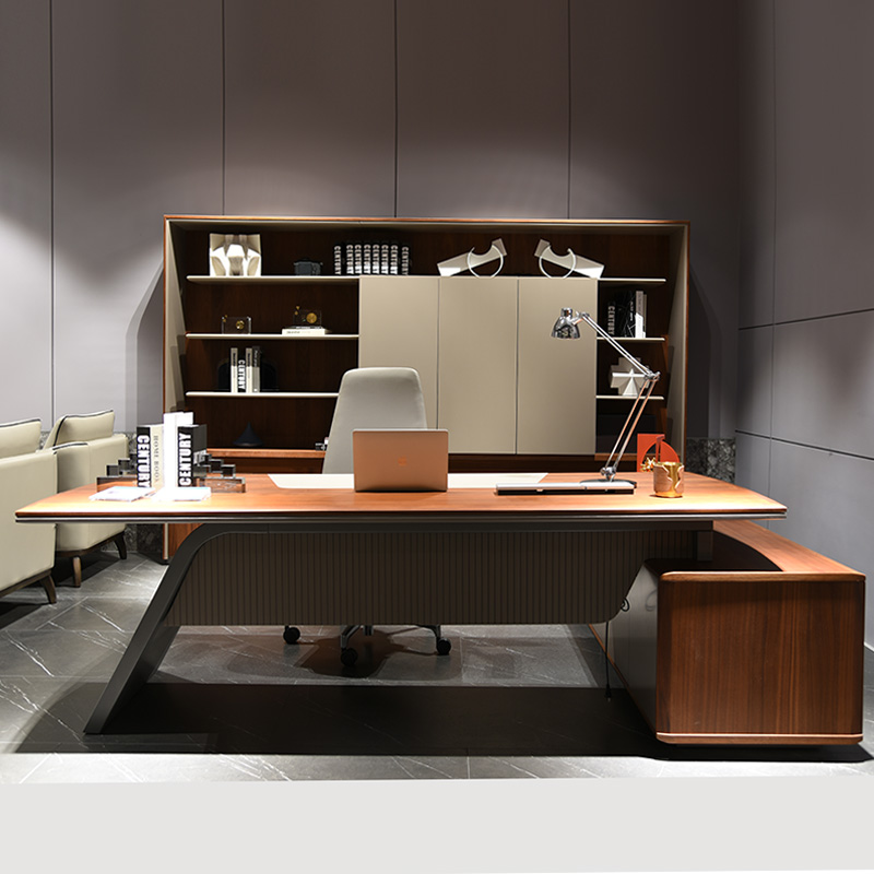 2 5 m boss table (imported North American walnuts wood) 2 8 m boss table (imported North American walnuts wood) grey cow leather boss chair black cow leather boss chair 3 m bookcase (imported North American walnuts wood) 3