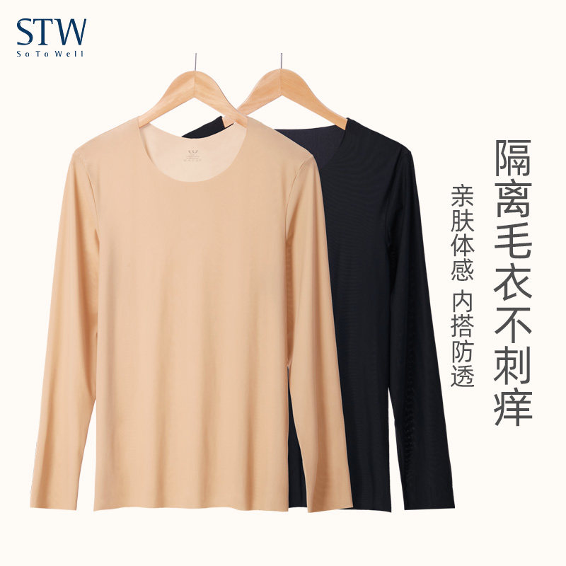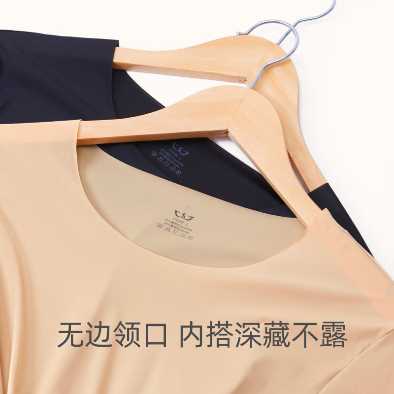 No-scratched warm clothes Men's ultra-thin autumn clothes ice silk Nets color slapped undershirt tight with low collars undercoat