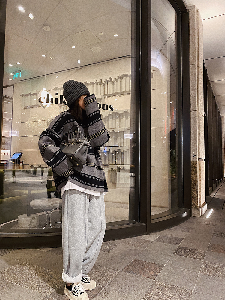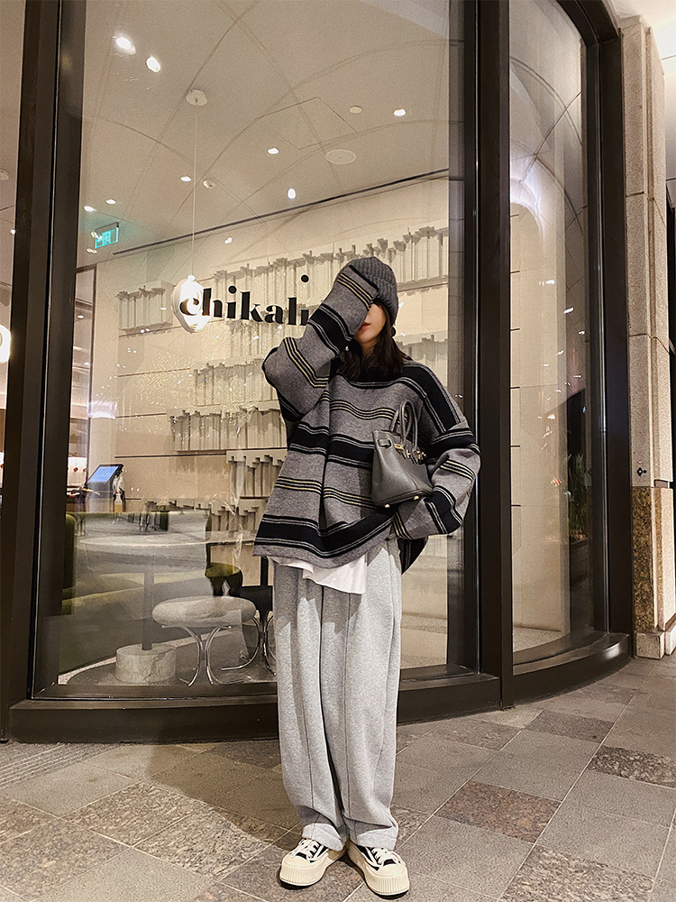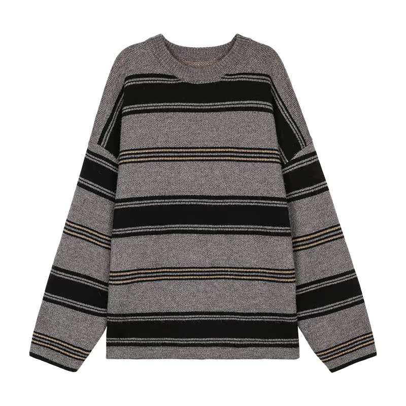 Xiao Nian Custom American Retro Striped Sweater Jacket Women's 2021 Winter New Thickened Lazy Sweater Jacket