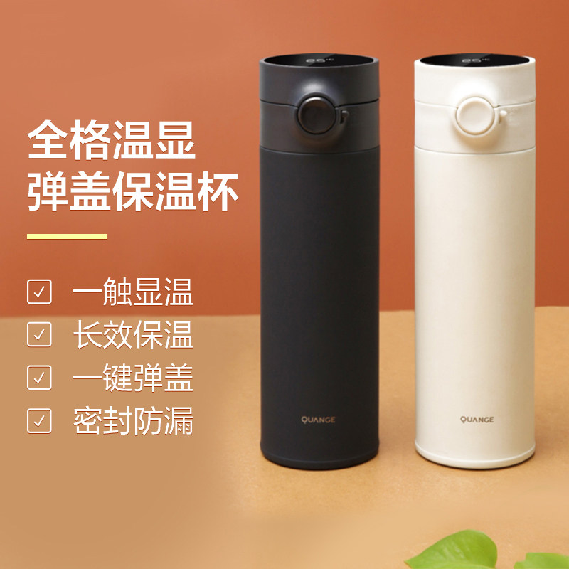 Full-grid bounce cover thermos cup smart temperature display digital water cup male and female students portable winter essentials