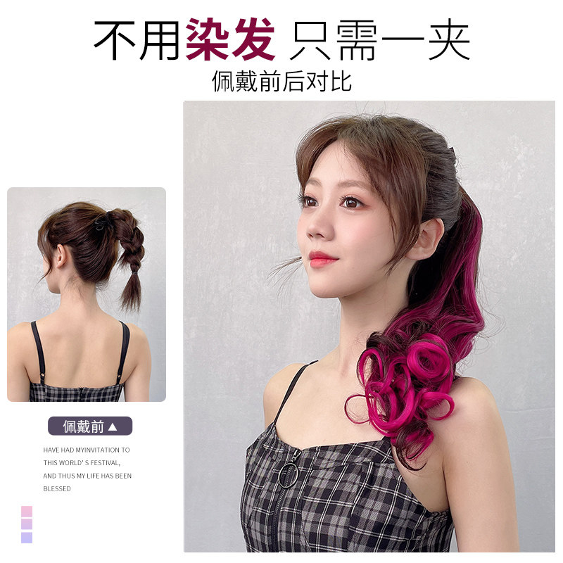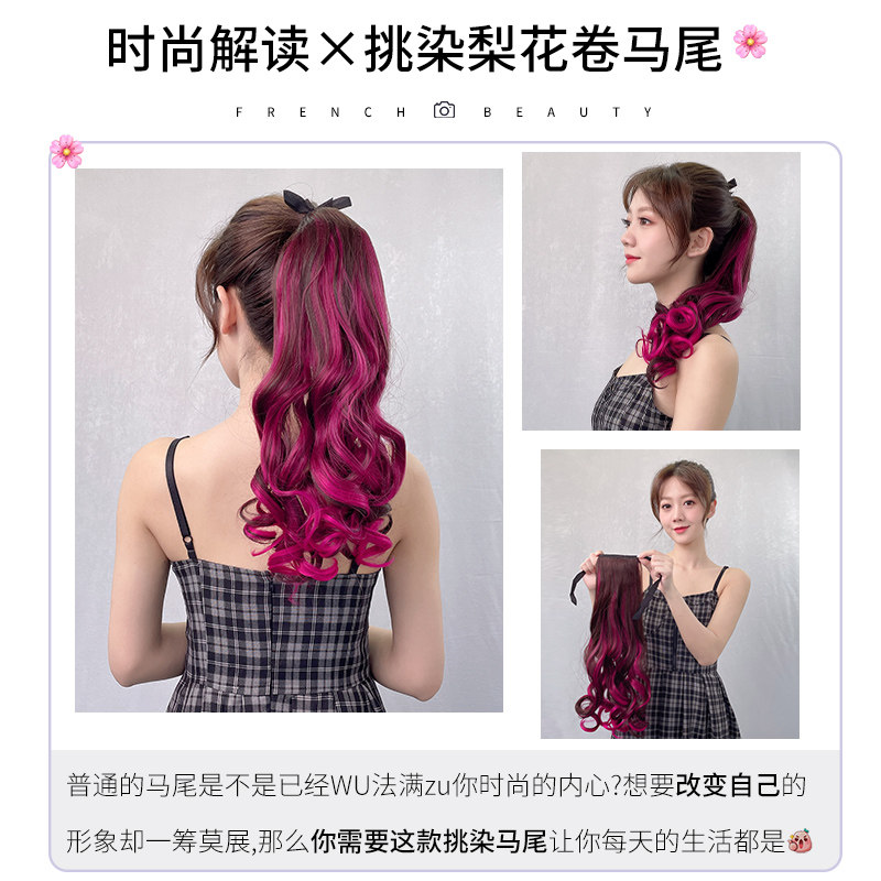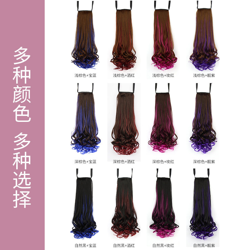 Strap style roll hair fake horse tail wig women net red high ponytail emulation hair pick up and dyeing and gradual layer color natural long horsetail