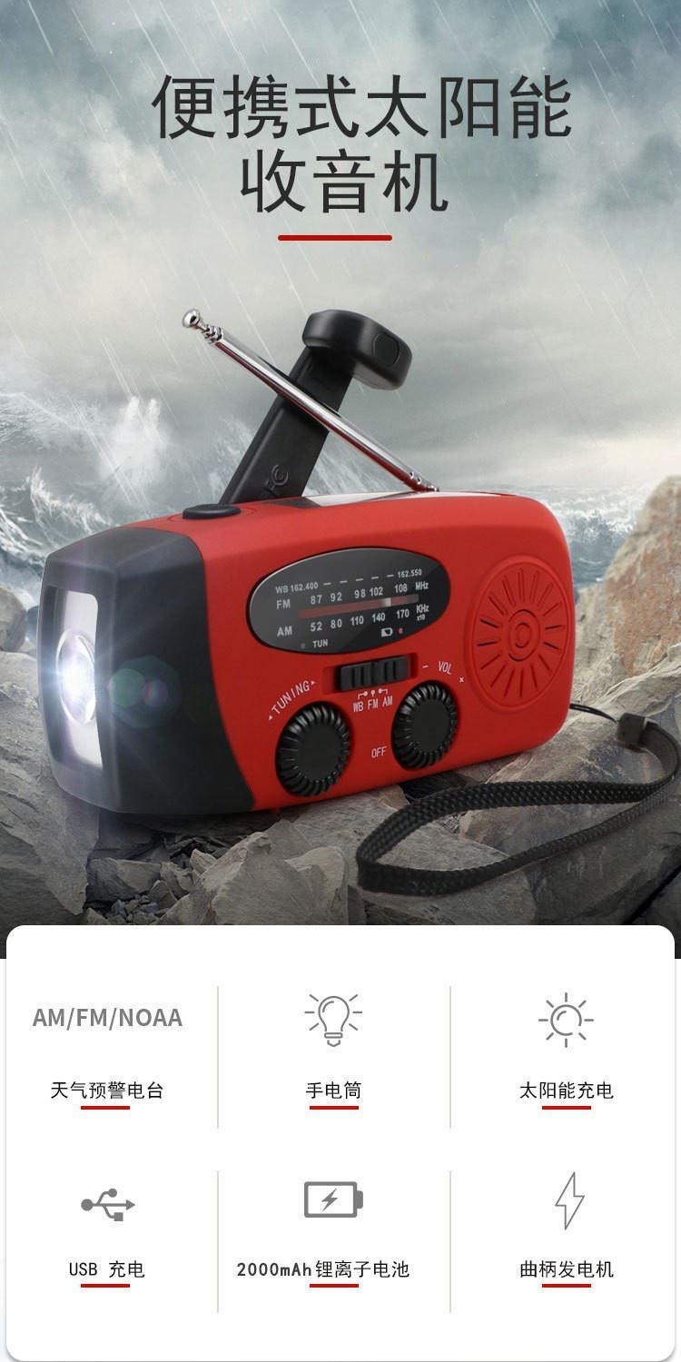(Spot) Japan Disaster Prevention Waterproof Multifunction Radio Outdoor Emergency Shake Power Generation Solar Flashlight