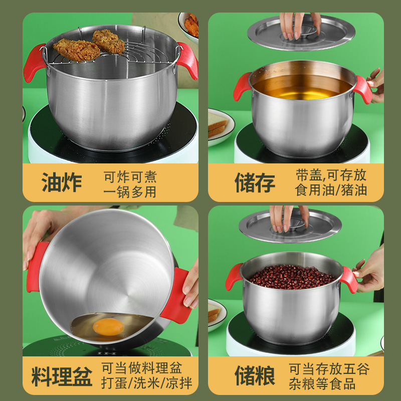 German Tian Luofu frying pan household small mini frying artifact kitchen provincial frying oil pan 304 stainless steel