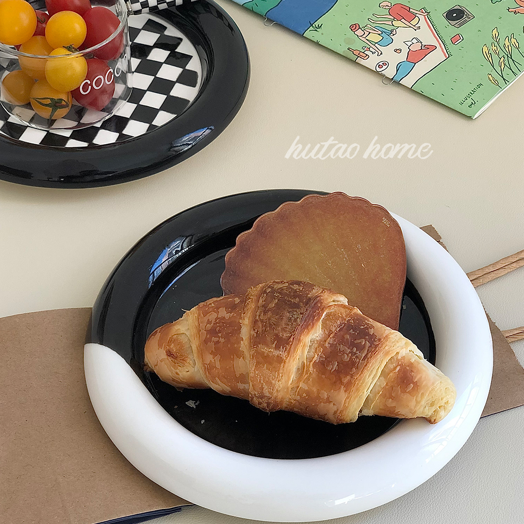 Nordic Ins Wind Fat Tuk-tuk black and white matching Chessboard Grid dinner plate minimalist 100 hitch pan disc glazed down