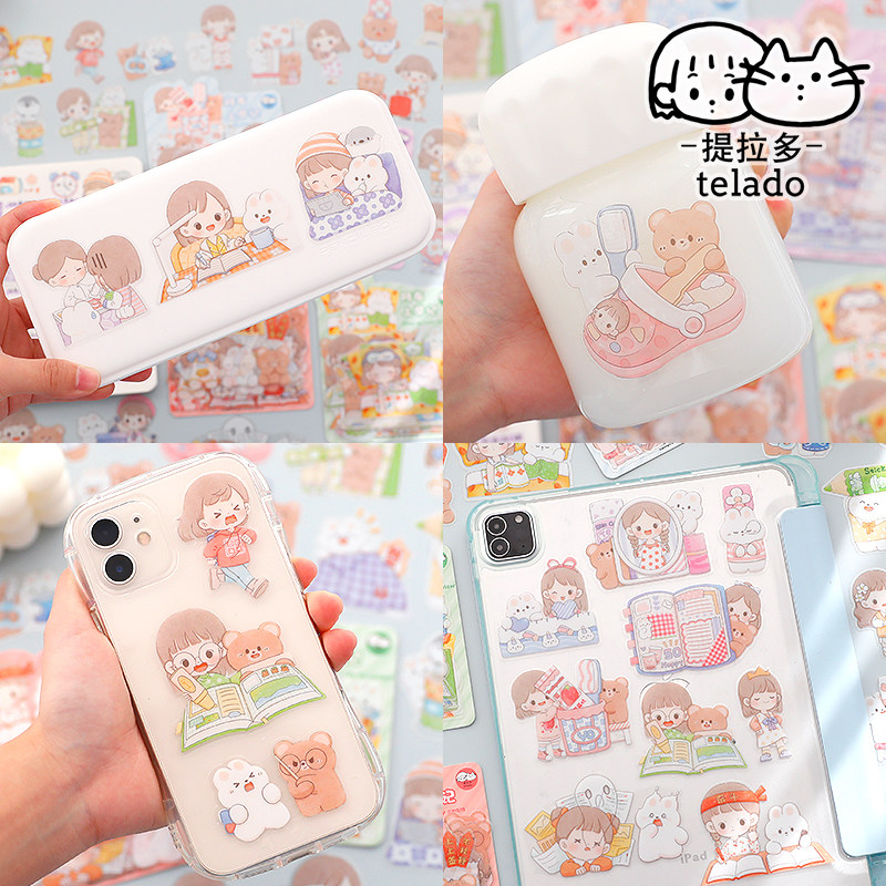 Tirado Abu Upper schoolbook Packets Handbill Stickers Cute Teenage Hearts Children Hands Ledger Diy Material Sticklers Wind Small Frescoed Cartoon Hands Account Material Waterproof PET Stickup Notes Decoration