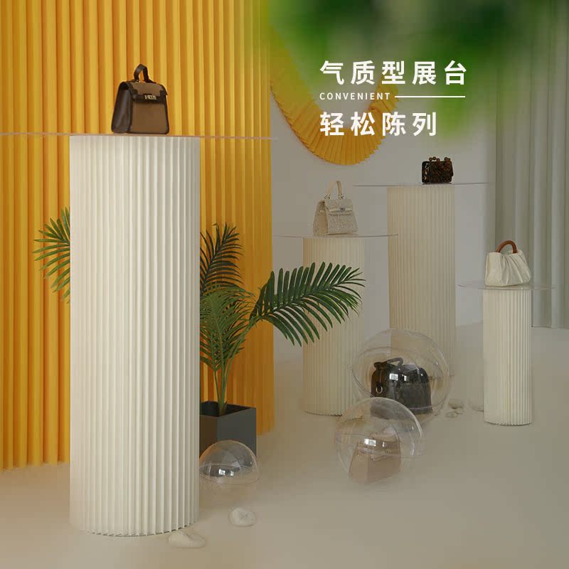 Creative cylindrical display stand commodity window display art table foldable movable storage cylindrical display stand