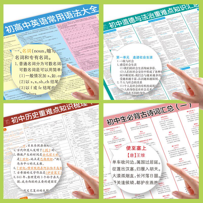 Upgraded version of junior high school knowledge wall chart full set of 21 three-year 9 subjects junior high school textbooks heavy and difficult knowledge wall chart set