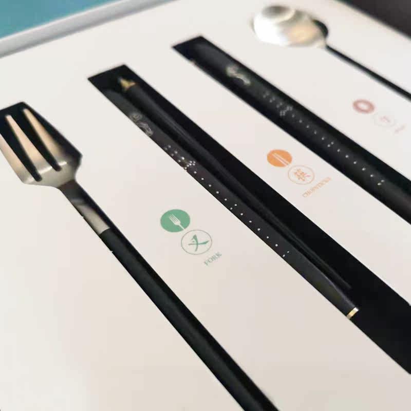 Non-genetic acceptance of Heart Ruyi Cutlery Sets Purple Light Sandalwood Stainless Steel Chopsticks Spoon Fork portable packaging